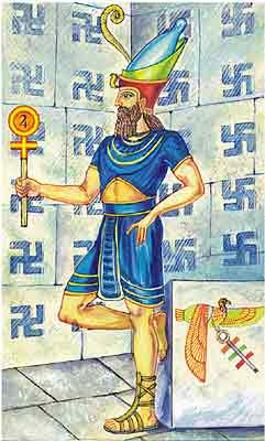 O Imperador está a olhar para o lado direito, mais uma vez o oposto da Imperatriz, mostrando-nos a acção, o movimento, o agir. Ele nunca está parado.